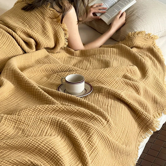 AHORRAR 50%Crinkle Cotton Tassel Throw Blanket
