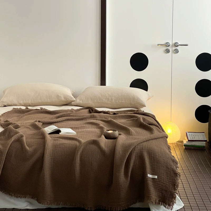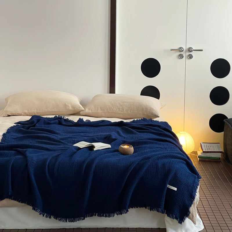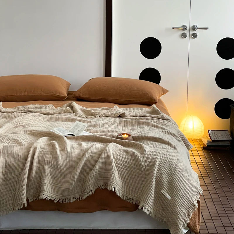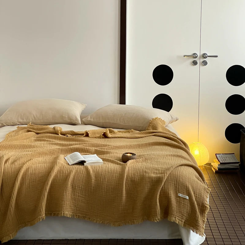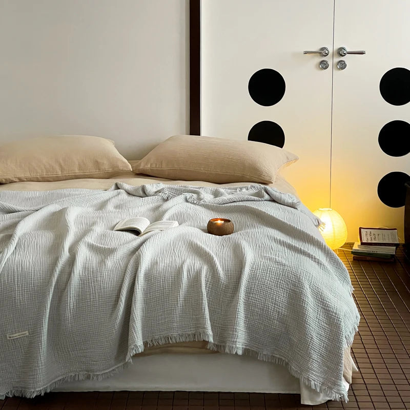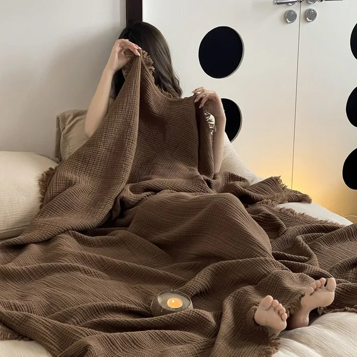 Crinkle Cotton Tassel Throw Blanket